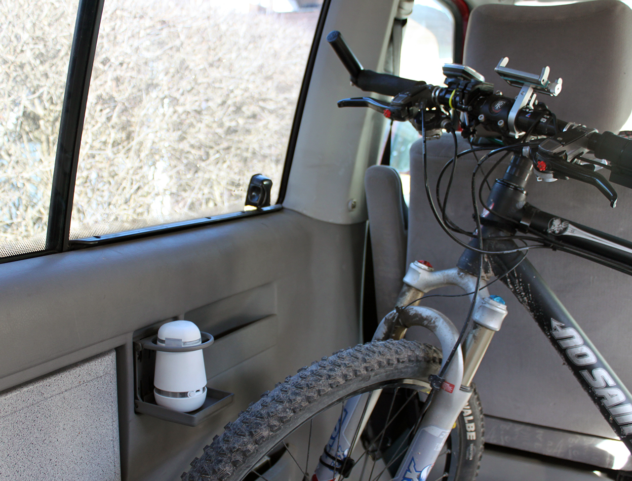 Sehr freue ich mich auch auf den Einsatz im VW-Bus. Wir fahren gelegentlich mit dem Bus zum Biken. Gerade bei Kurzurlauben hatte ich schon öfters ein ungutes Gefühl, wenn den ganzen Tag unsere Sachen unbeaufsichtigt im Wohnmobil waren. Aber zum Radeln nimmt man aus Gewichtsgründen halt nur das Nötigste mit. Alles andere wie Laptop, Tablet, Kamera etc. muss im Auto bleiben. Wir wurden zwar bisher vor Einbruch verschont, aber ich kenne einige, bei denen das Auto aufgebrochen wurde.